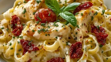 Fettuccine Alfredo with Chicken and Sundried Tomatoes