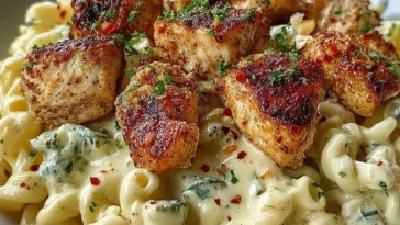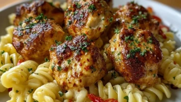 Garlic Butter Chicken Bites with Spicy Cajun Alfredo Twisted Pasta