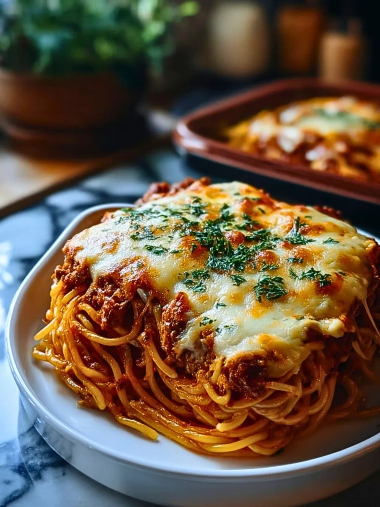 Keywords: baked spaghetti, easy pasta recipe, comfort food, cheesy pasta, dinner ideas