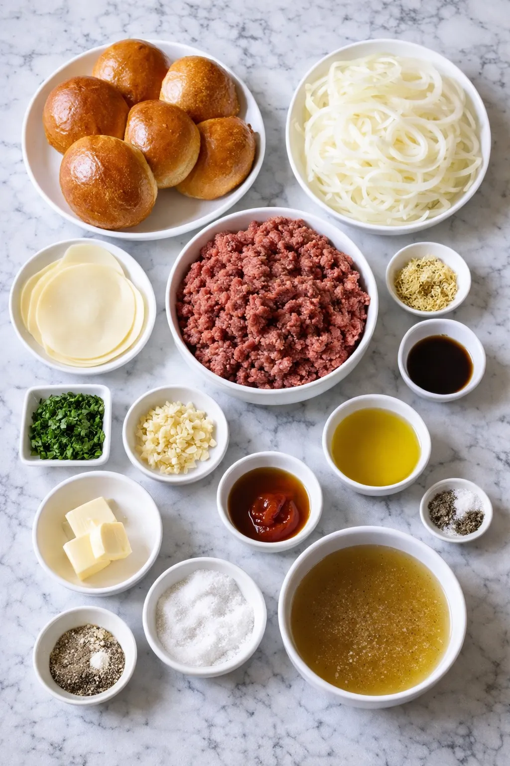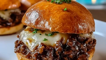 Soft brioche buns or brioche slider rolls are ideal because their buttery flavor pairs perfectly with the French onion vibe. Potato rolls also work well and stay tender even after toasting. Whatever you choose, look for buns that are slightly enriched (not dry like a basic hamburger bun) and toast them lightly so they hold up to the generous amount of filling without getting soggy.