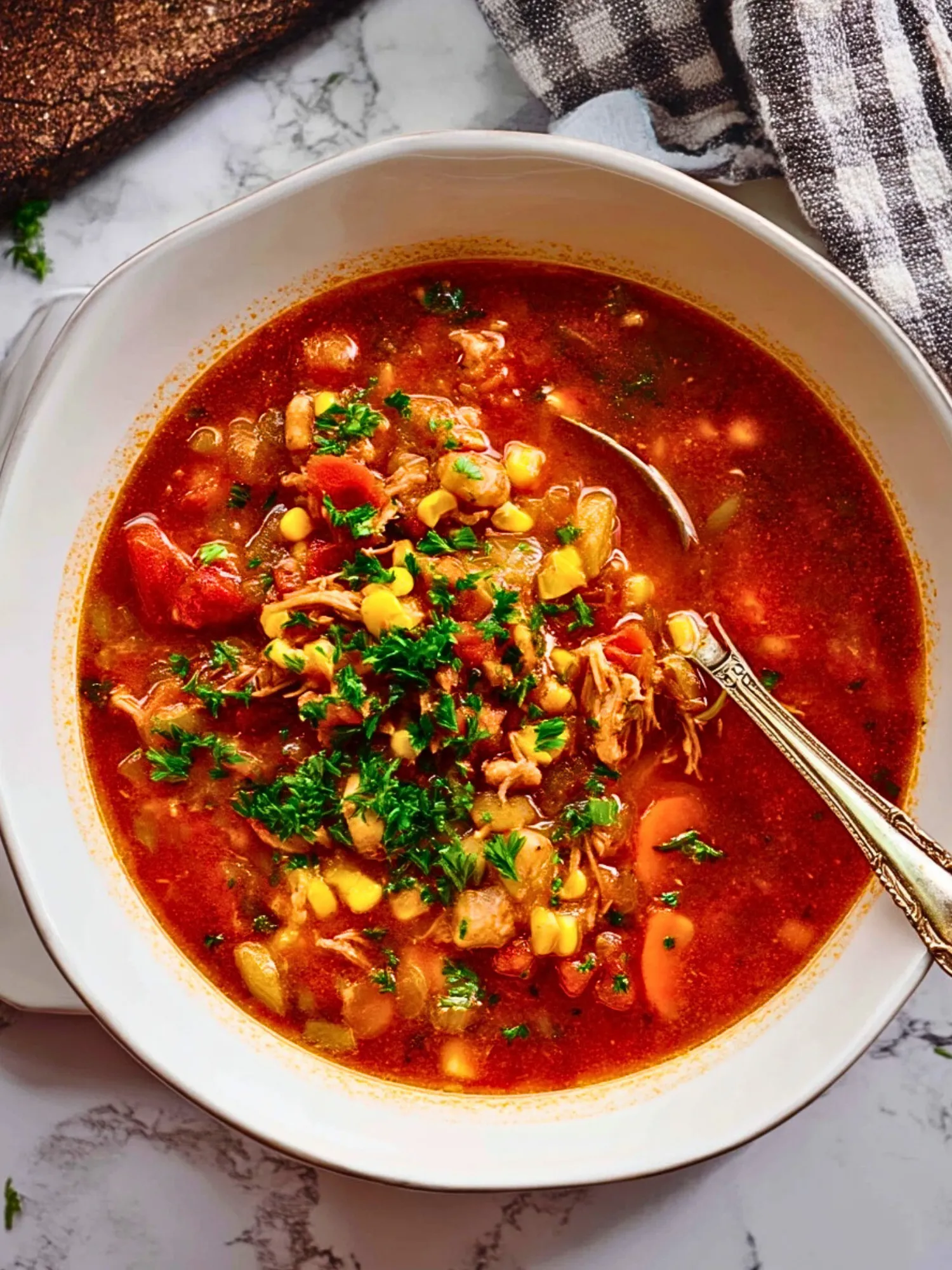 This Brunswick Stew is a classic Southern comfort dish loaded with shredded chicken, pulled pork, corn, tomatoes, and a BBQ-infused broth. It’s a hearty one-pot recipe perfect for chilly nights, easy dinners, or weekend gatherings. Rich, smoky, slightly sweet, and packed with protein and veggies—this is your go-to quick dinner idea, freezer-friendly meal prep, and family-style comfort food in one bowl.
