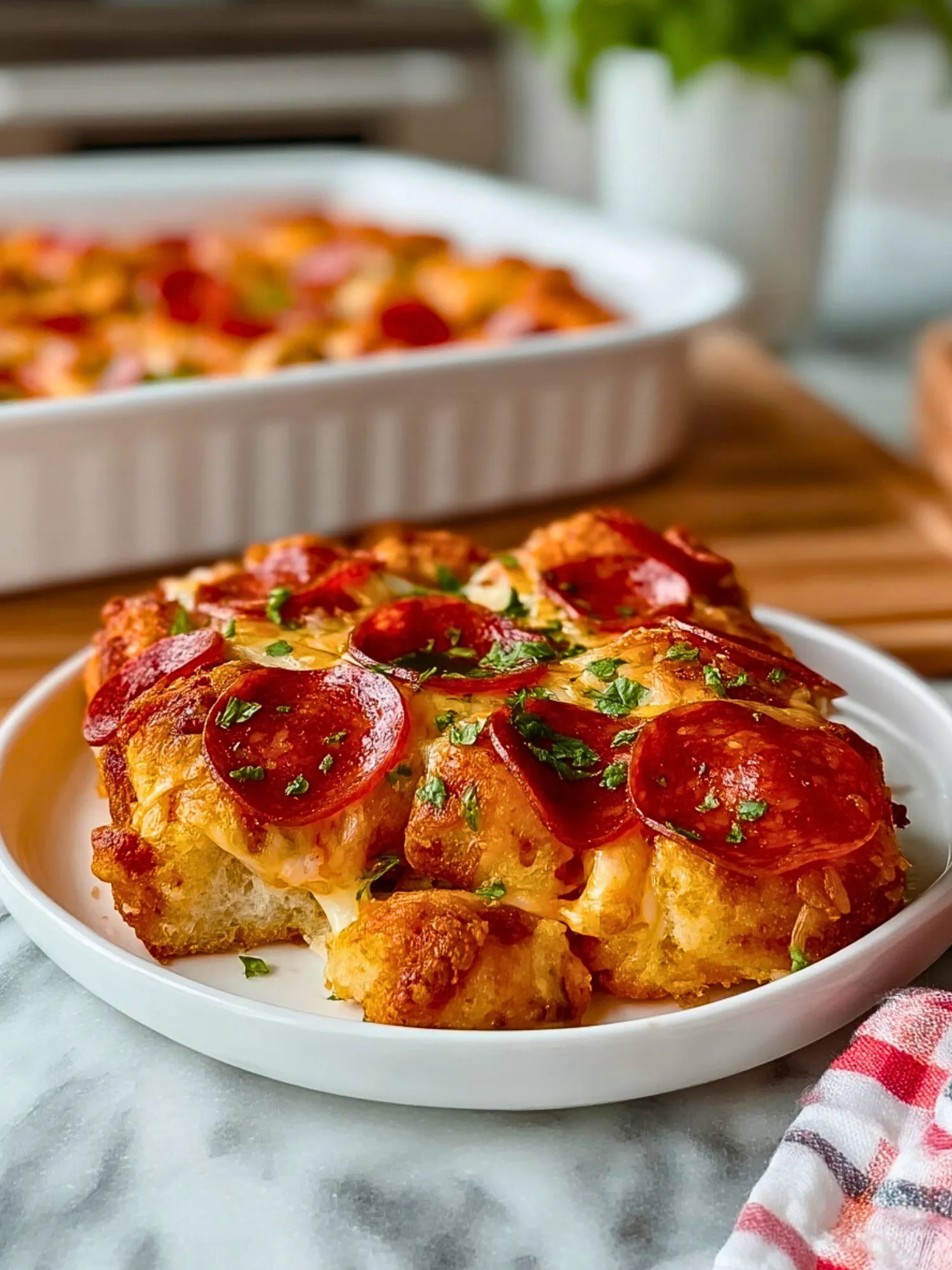 This casserole is best served hot and fresh out of the oven, with all the cheese perfectly melted and the edges golden brown. It feeds about 6 people generously, making it ideal for family dinners, casual get-togethers, or pizza night at home. If you have leftovers, simply store them in an airtight container in the fridge for up to 3 days. Reheat individual portions in the microwave or warm the whole dish in a 300°F oven until heated through.