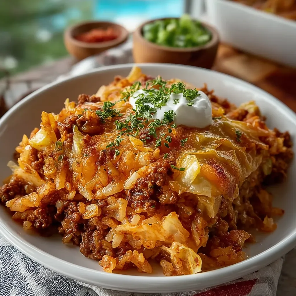 - All the stuffed-cabbage flavor with none of the rolling. You get the same classic combo of beef, cabbage, and tomato, but layered like lasagna for way less work.