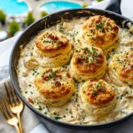 These Buffalo Chicken Bombs are a spicy, cheesy, and irresistibly flaky comfort food wrapped in a golden biscuit crust. Whether you’re craving an easy dinner, a quick snack, or crowd-pleasing party food, this recipe delivers. Made with tender shredded chicken tossed in buffalo sauce and gooey mozzarella, they’re perfect for game day, quick lunch, or creative dinner ideas. Pair them with ranch or blue cheese for a bold, easy recipe packed with flavor. It’s one of the best food ideas for any buffalo chicken lover looking for quick and satisfying meals.