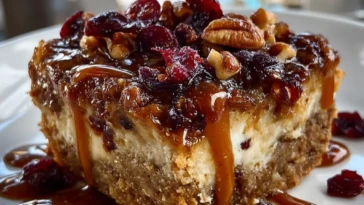 • Caramel Pecan Cranberry Cheesecake Bars