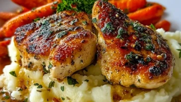 • Garlic Herb Chicken with Mashed Potatoes and Glazed Carrots