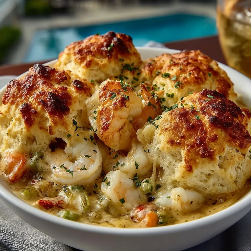 Keywords: seafood pot pie, biscuit casserole, easy seafood bake, quick dinner idea, cheddar bay biscuit recipe