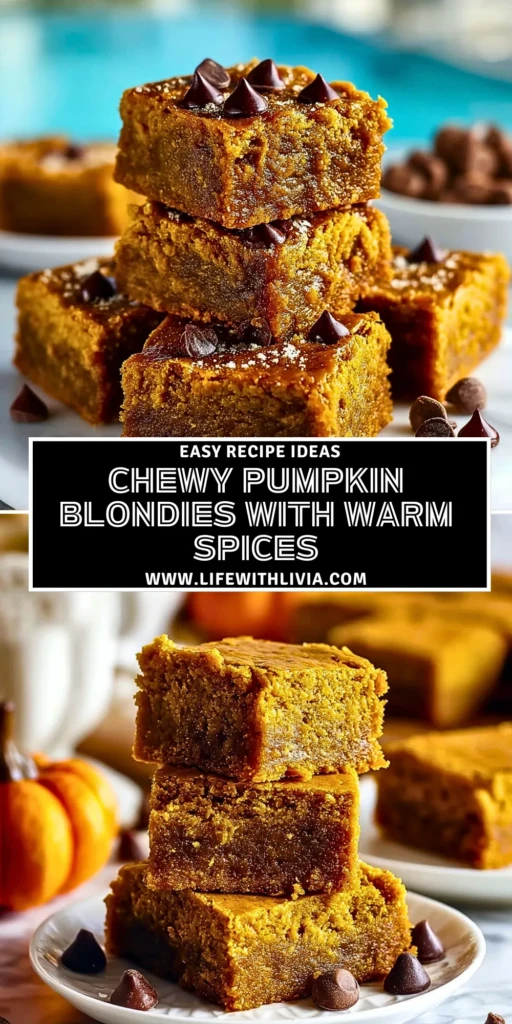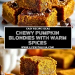 Keywords: chewy pumpkin blondies, fall dessert, easy recipe, pumpkin bars, warm spices