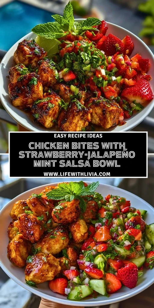 Chicken Bites with Strawberry-Jalapeño Mint Salsa Bowl is the ultimate celebration of fresh, bold flavors. It’s quick, colorful, and packed with feel-good ingredients that make eating healthy a total joy. Whether you’re planning a casual dinner or prepping a wow-worthy meal for guests, this dish delivers every time. Keep it on your meal rotation for those days when you want something easy, beautiful, and unforgettable.