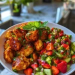 Sweet, spicy, fresh, and satisfying – this Chicken Bites with Strawberry-Jalapeño Mint Salsa Bowl is the kind of dish that turns a regular meal into something worth remembering. Tender, seasoned chicken bites are pan-seared until golden, then paired with a refreshingly bright salsa made with juicy strawberries, crisp cucumbers, fiery jalapeños, and cool mint. Every bite packs bold flavors that dance together like summer on a plate.