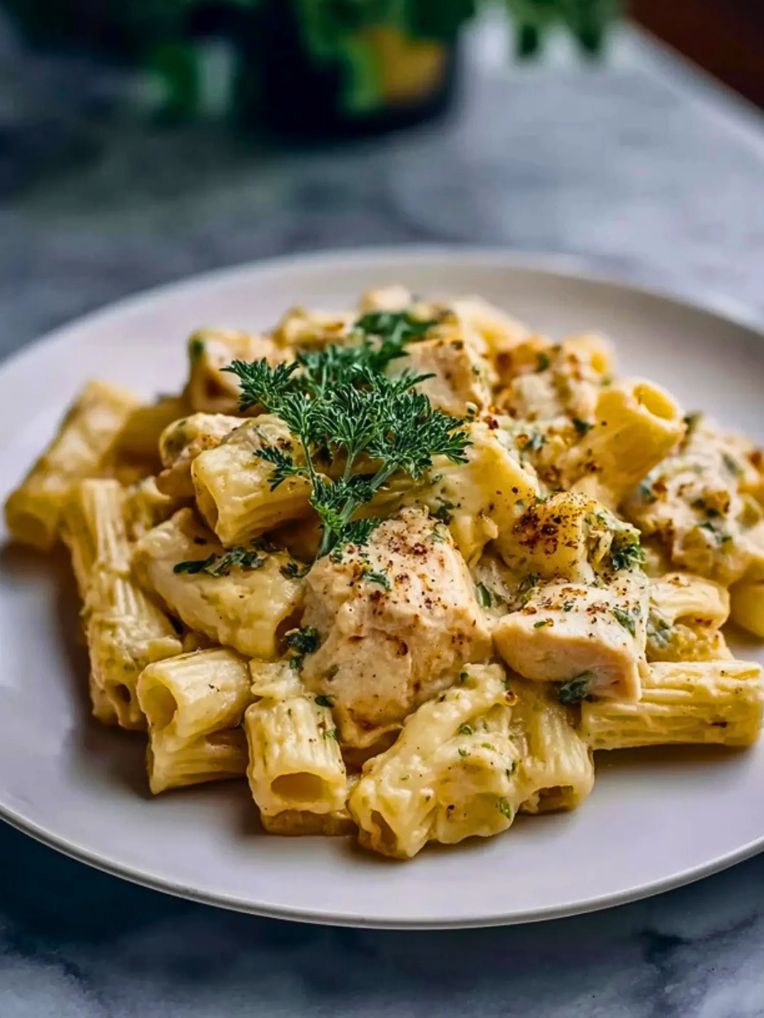 This creamy Chicken Rigatoni Alfredo is best served hot, right off the stove when the sauce is at its smoothest and the flavors are vibrant. It makes an excellent main course for four to six people, depending on portion size. For a more elegant presentation, garnish with extra Parmesan shavings and a sprig of parsley.