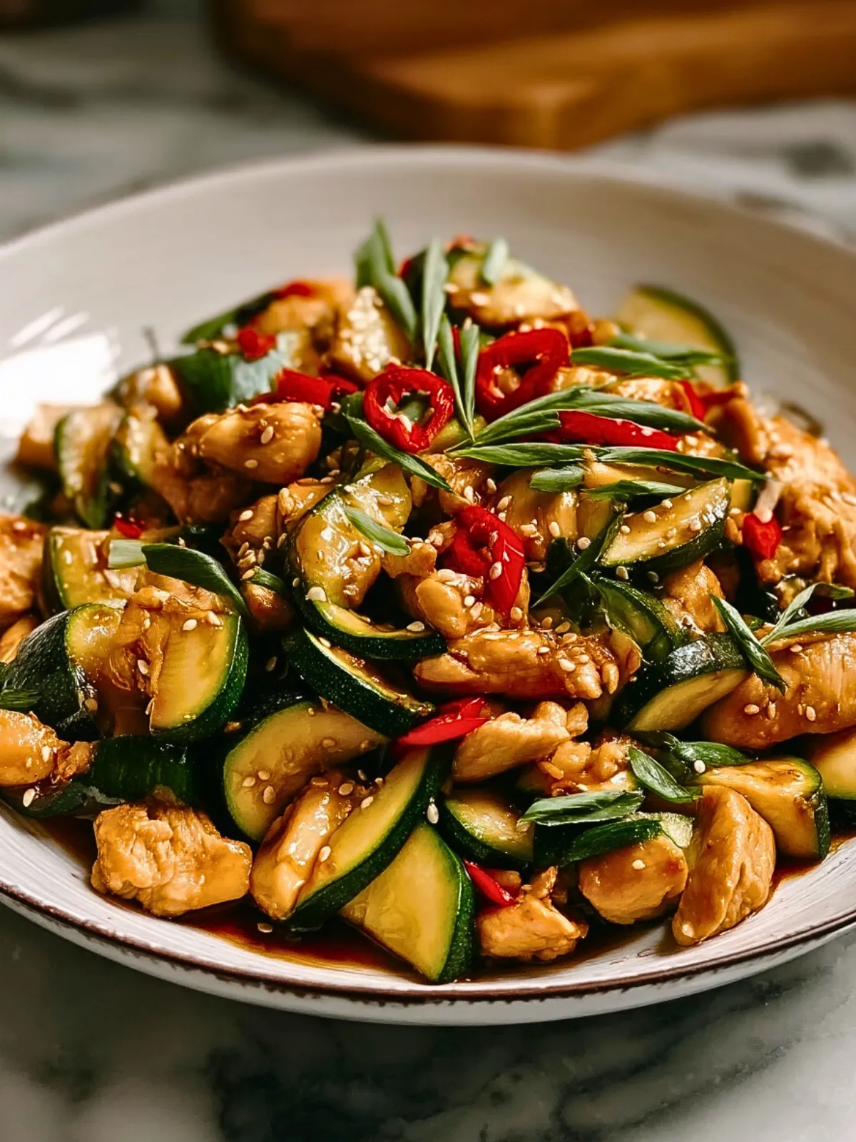 Colorful, vibrant, and packed with flavor, this Chicken Zucchini Stir Fry is the perfect weeknight dinner that comes together in under 30 minutes. Tender slices of chicken breast are sautéed with crisp zucchini, tossed in a savory garlic-soy glaze, and finished with a sprinkle of sesame seeds and chili for a touch of heat. It’s light, protein-packed, and bursting with umami goodness.