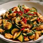 Colorful, vibrant, and packed with flavor, this Chicken Zucchini Stir Fry is the perfect weeknight dinner that comes together in under 30 minutes. Tender slices of chicken breast are sautéed with crisp zucchini, tossed in a savory garlic-soy glaze, and finished with a sprinkle of sesame seeds and chili for a touch of heat. It’s light, protein-packed, and bursting with umami goodness.