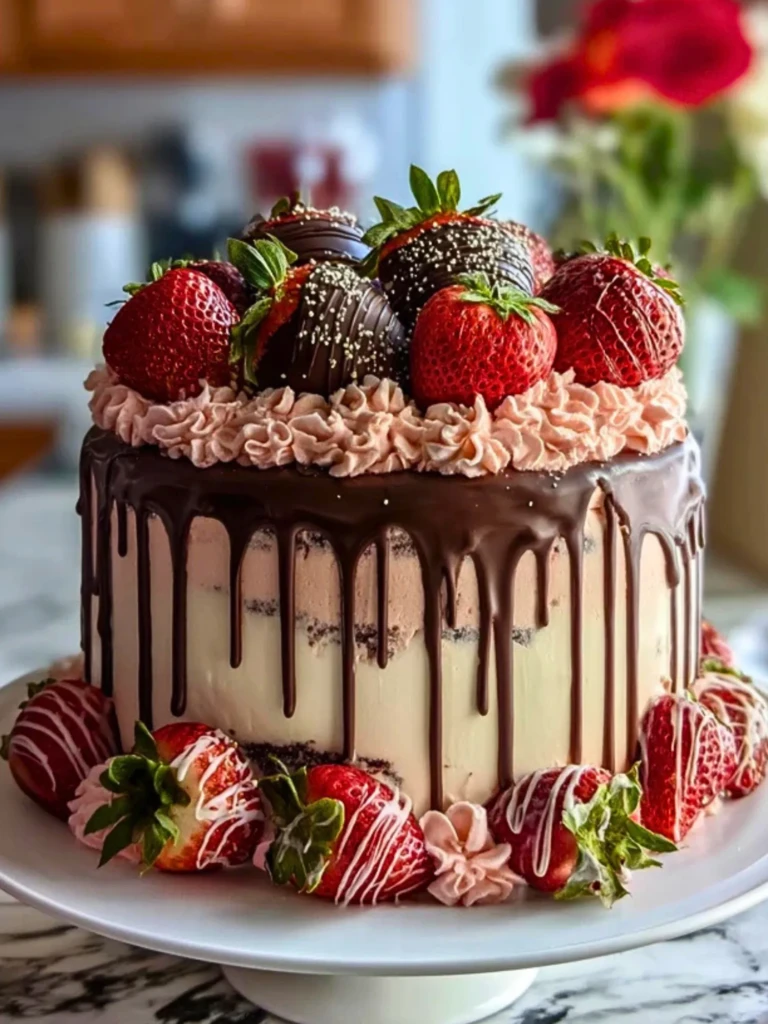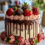 Sweet, juicy strawberries meet a rich, decadent chocolate ganache in this show-stopping Chocolate Covered Strawberry Drip Cake. It’s as indulgent as it is beautiful—a dessert that brings together the elegance of fresh strawberries, the fluffiness of whipped cream, and the deep, silky layers of moist chocolate cake. This cake isn’t just a treat; it’s a full sensory experience.