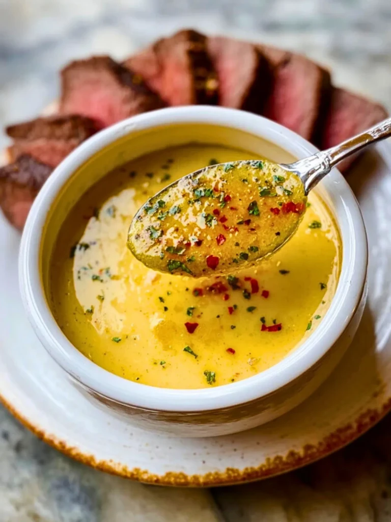 This isn’t just melted butter—it’s a flavor bomb. You’ll love how easy it is to throw together with pantry staples in just minutes. It adds serious punch to grilled steaks, shrimp skewers, roasted potatoes, and even crusty bread. The balance of citrus, garlic, and spice is pure perfection, and it stays warm and dippable for your whole meal.