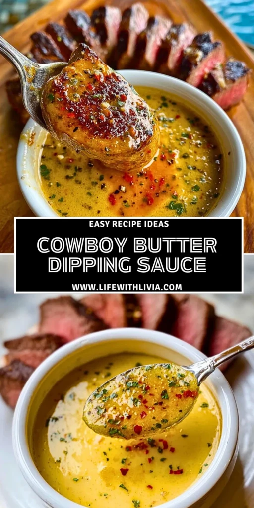 Cowboy Butter Dipping Sauce is bold, buttery, and endlessly versatile. Whether you’re grilling steak, dipping shrimp, or jazzing up veggies, this sauce turns any dish into a flavor-packed experience. With just a few simple ingredients and a quick simmer, you’ll have a crowd-pleasing condiment ready in minutes. Once you try it, you’ll want to keep a batch in your fridge at all times!