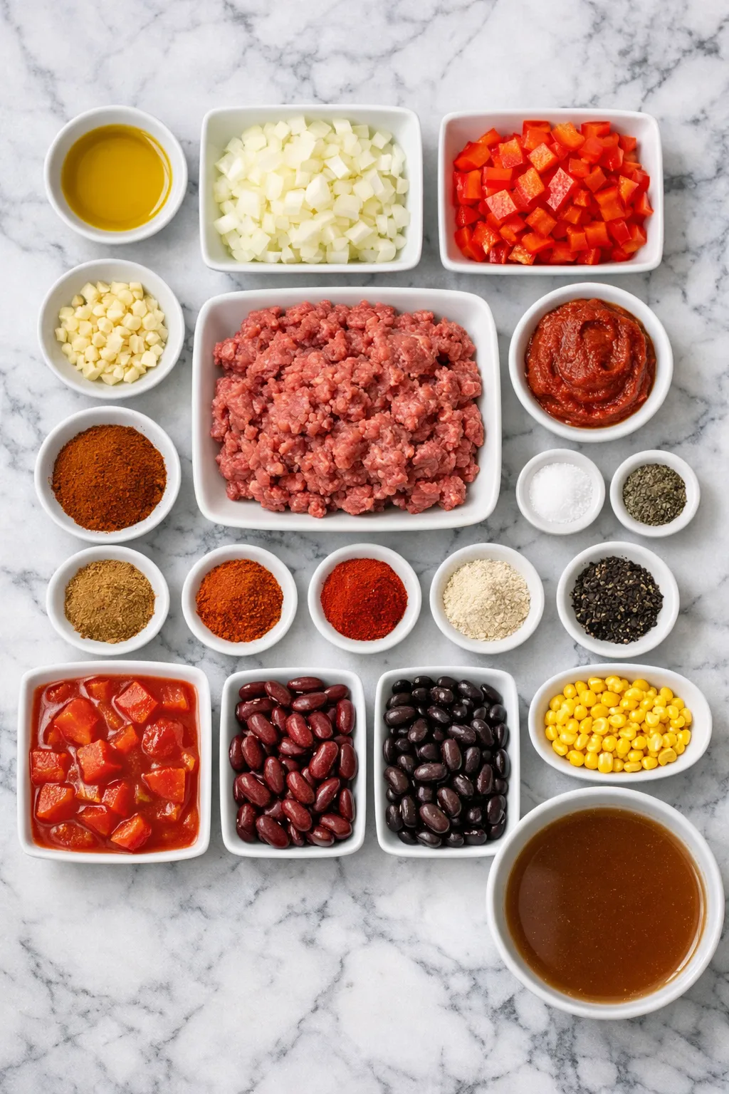 - Tomato paste — Deepens the chili’s rich tomato flavor.