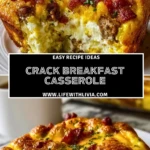 Wake up to the ultimate comfort food with this Crack Breakfast Casserole. A perfect blend of savory sausage, crispy bacon, cheesy goodness, and fluffy eggs all layered over tender hash browns. This easy recipe is ideal for quick breakfast meal prep, holiday brunches, or anytime you need a hearty start to your day. Packed with protein, flavor, and make-ahead convenience, this is one of those must-try breakfast ideas that ticks every box for an easy recipe that feeds a crowd.