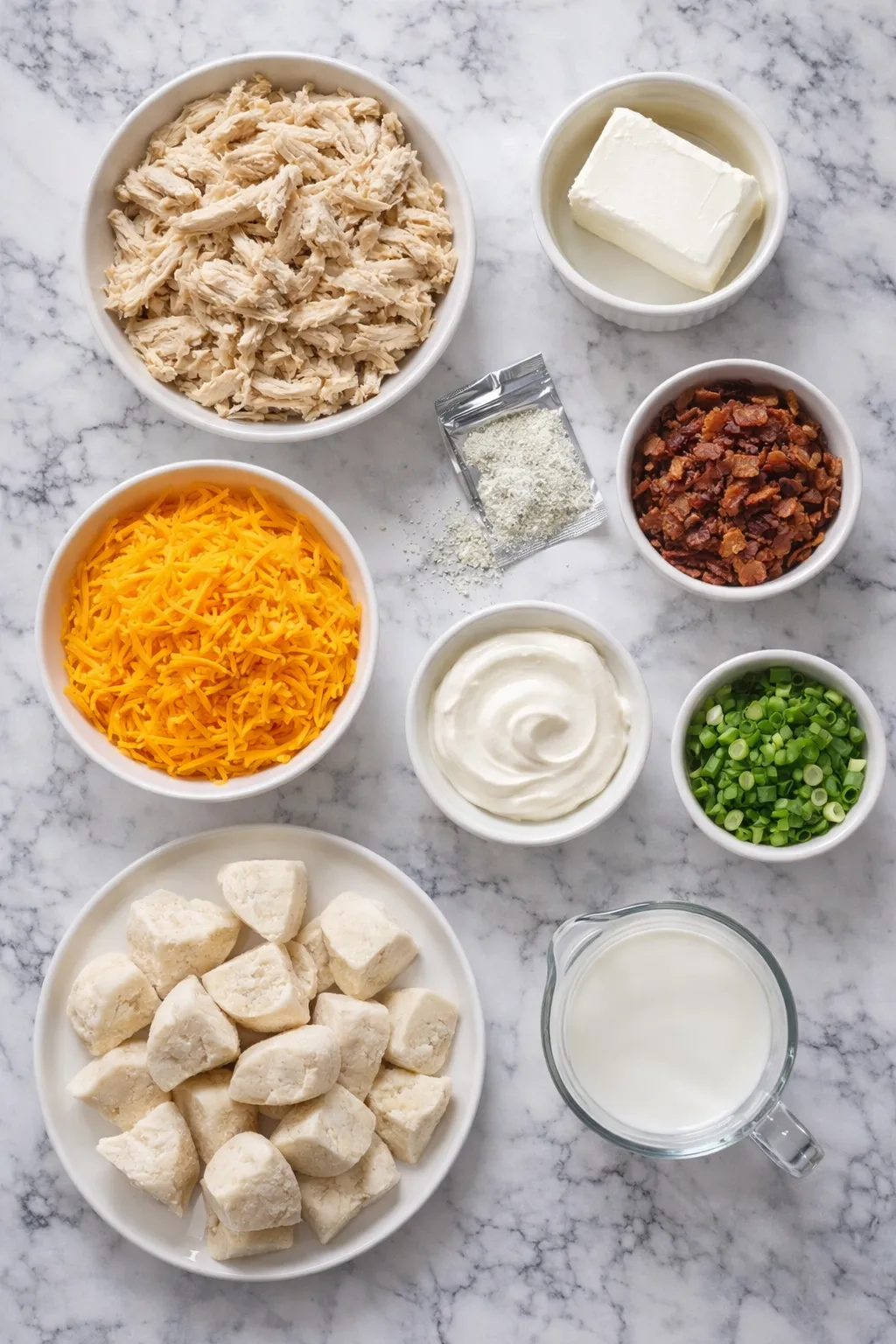 • Cooked Chicken: The base protein that carries all the creamy flavors.