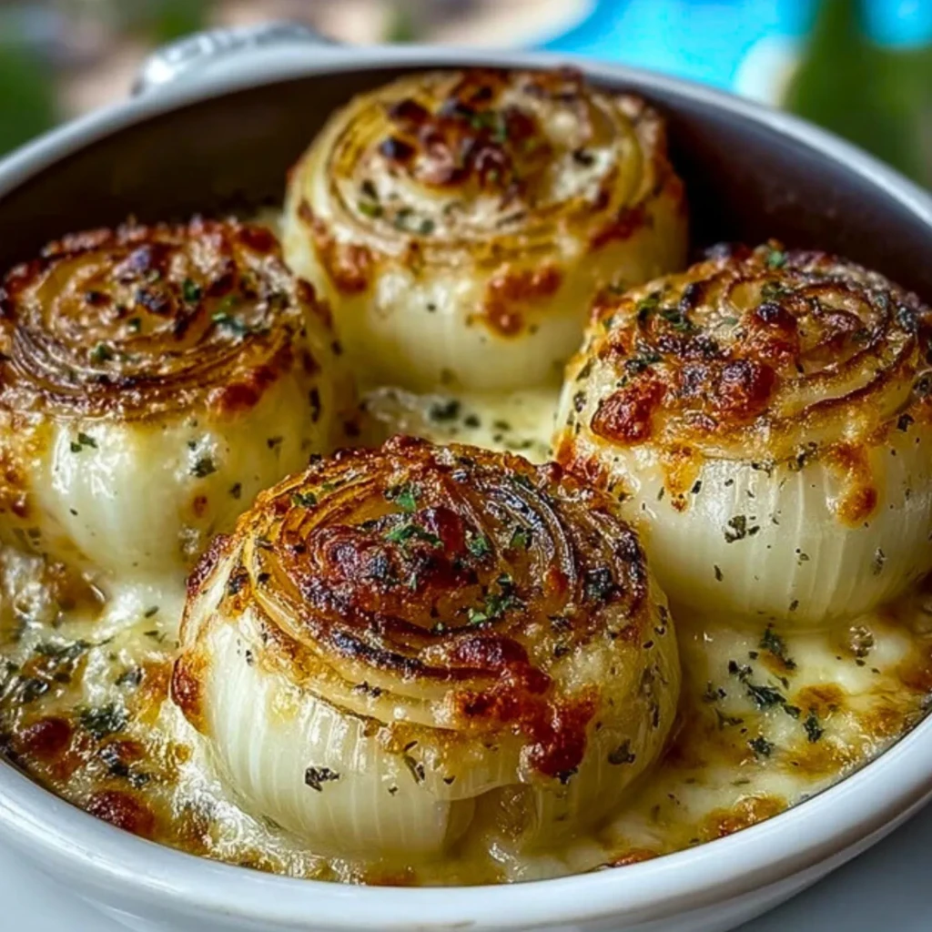 5. Bake at 375°F (190°C) uncovered for 35–40 minutes until onions are tender and tops are golden. Broil for 2–3 minutes if more browning is desired.