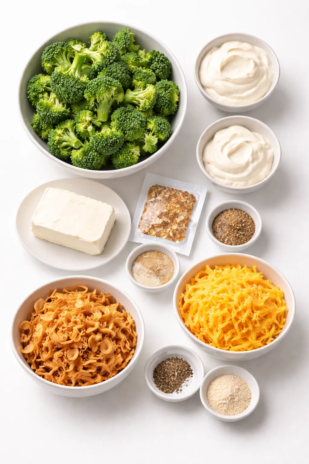 Ingredients for the Creamy French Onion Broccoli Cheese Casserole