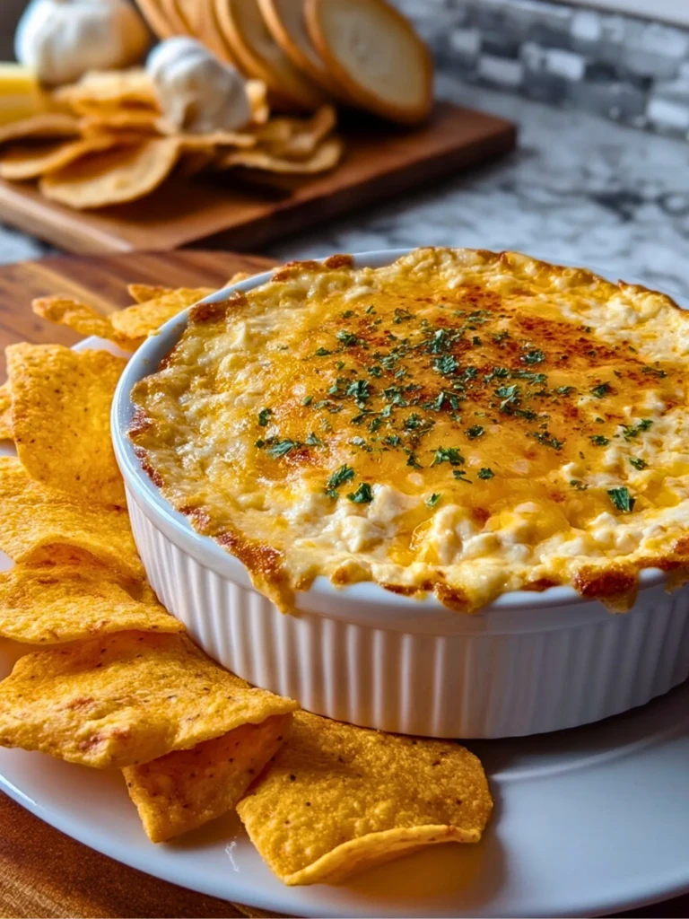 This cheesy dip is best served piping hot right out of the oven when the top is bubbly and golden. It feeds about 6 to 8 people, making it perfect for parties, potlucks, or just a weekend treat with family.