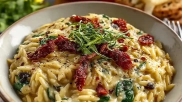 Creamy Tuscan Orzo is a rich, comforting one-pan pasta dish that turns simple ingredients into an easy dinner everyone will want again. With tender orzo, garlic, parmesan, spinach, and sun-dried tomatoes in a velvety sauce, this easy recipe is perfect for quick dinner nights, cozy family meals, and comforting food ideas when you need a flavorful meal without extra work.