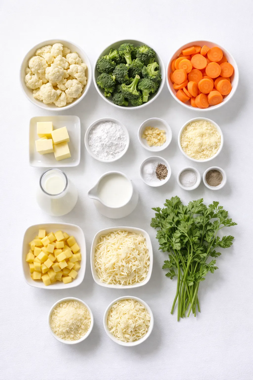 Root vegetables and hearty greens shine in winter casseroles. For this version, broccoli, cauliflower, carrots, and Yukon gold potatoes bring the perfect balance of color, flavor, and bite. You can also experiment with parsnips, turnips, or Brussels sprouts if you like more variety.