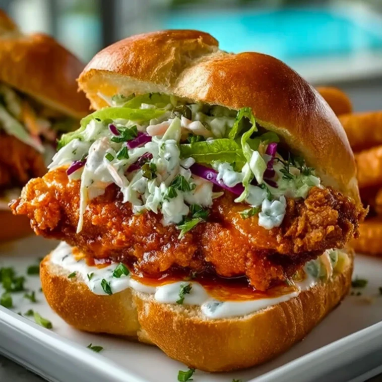This sandwich is a crowd-pleaser, whether you’re serving it at a game day gathering, whipping it up for a quick weeknight dinner, or indulging in a satisfying lunch. The texture contrast and flavor balance are simply addictive — spicy, crispy, creamy, and fresh all at once.