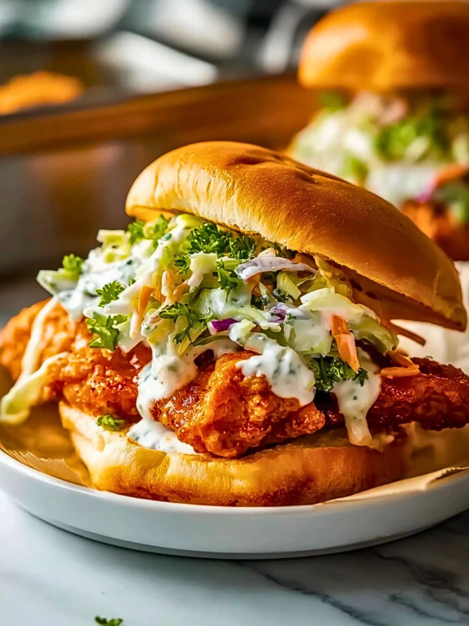 The Crispy Buffalo Chicken Sandwich with Ranch Slaw is the ultimate combo of heat, crunch, and creamy coolness. With juicy chicken, spicy sauce, and a refreshing slaw, it delivers comfort food with an edge. Whether you serve it for dinner, lunch, or your next gathering, this sandwich won’t disappoint. Keep it spicy, keep it crispy, and enjoy every bite!