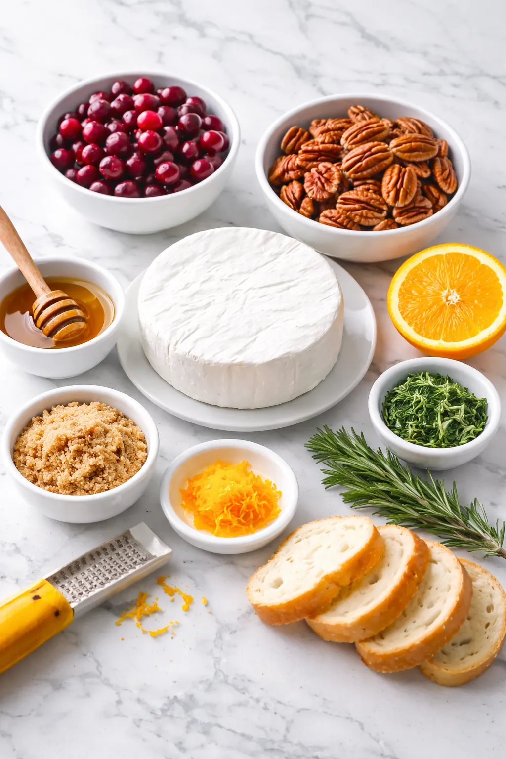 - Fresh cranberries – add tartness, bright color, and that signature holiday flavor that balances the richness of the cheese.