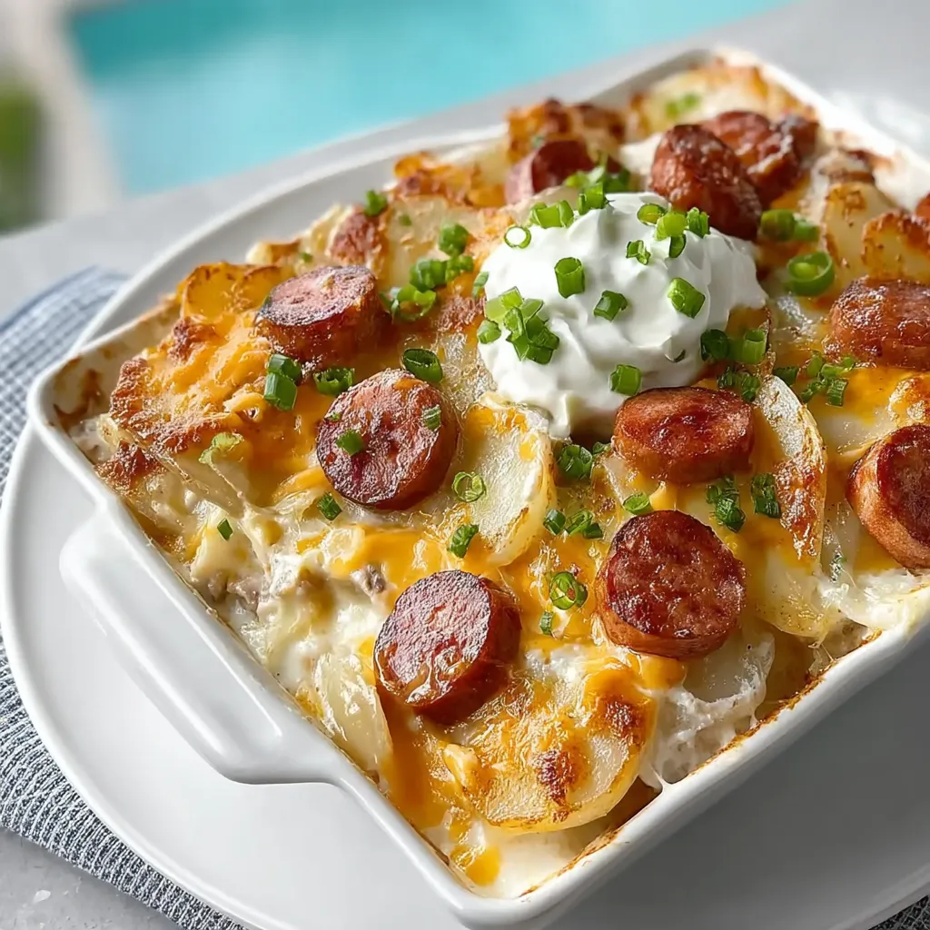 - Smoked sausage or kielbasa — adds savory, smoky flavor and turns the bake into a full meal.
