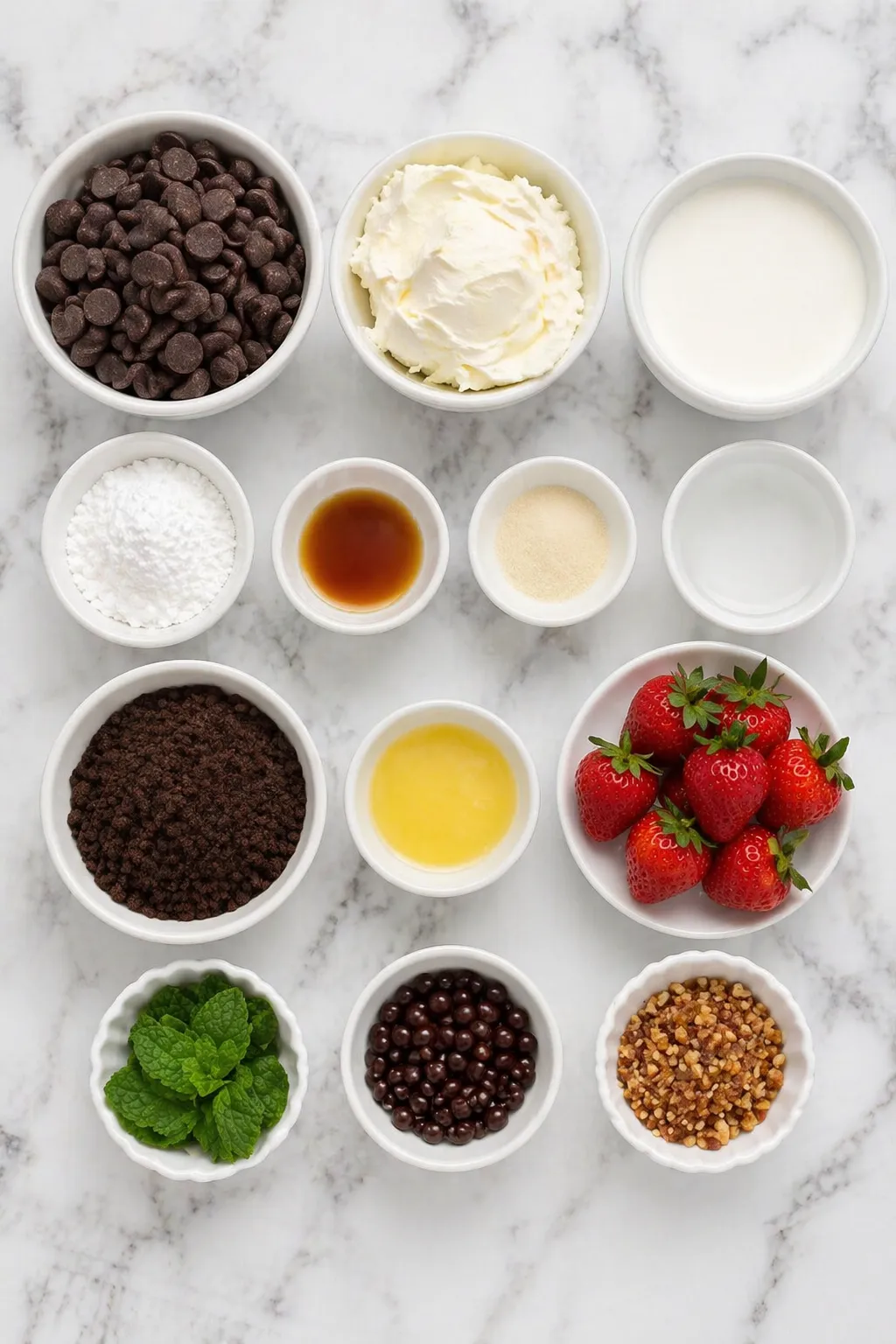 - Chocolate: forms the glossy shell and adds rich structure to the dessert.
