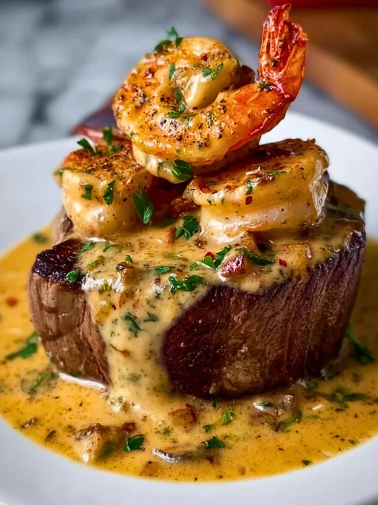 Turn any night into a fine dining experience with this irresistible Filet Mignon with Shrimp and Lobster Cream Sauce. This easy recipe delivers restaurant-quality surf and turf right from your kitchen. Juicy filet mignon meets tender shrimp, all drenched in a rich, creamy lobster sauce with hints of garlic, herbs, and parmesan. Whether you’re planning a romantic date night or searching for elegant dinner ideas, this dish is sure to impress. It’s perfect for special occasions, weekend meals, or whenever you’re craving a flavorful, quick dinner that still feels luxurious. Great for fans of easy recipe inspiration, food ideas for two, and protein-packed dinner ideas.