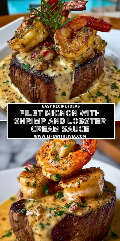 Keywords: filet mignon, lobster cream sauce, surf and turf, shrimp steak dinner, easy gourmet recipe
