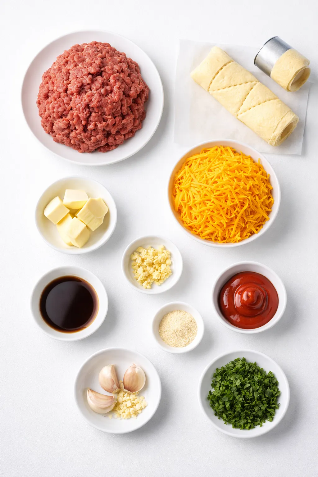 Ingredients for the Garlic Butter Cheeseburger Rollups