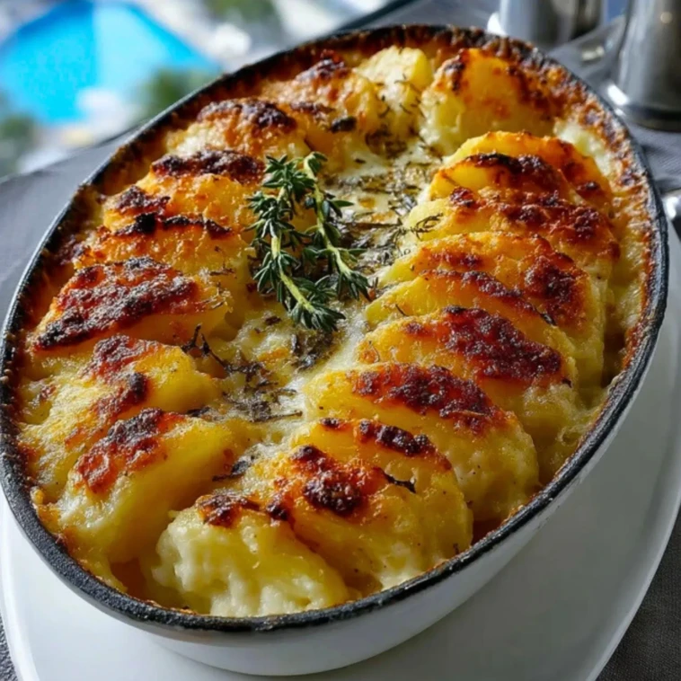 Let the gratin rest for 10 minutes before serving. Garnish with a few thyme sprigs for a fragrant finish.