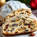Soft, buttery, and filled with festive flavors, German Christmas Stollen is a cherished holiday bread that brings warmth to any winter table. This fruit-studded loaf is enriched with dried fruits, crunchy almonds, warm spices, and often a surprise marzipan center, all wrapped in a snowy blanket of powdered sugar. Each bite offers a sweet, nutty, and slightly boozy richness that has made it a Christmas classic for centuries.