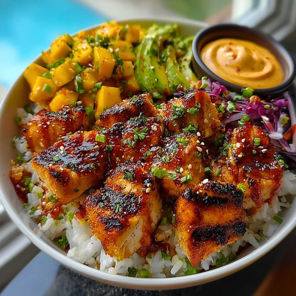Perfect for weeknight dinners, meal prep lunches, or impressing guests, this bowl brings tropical flair and savory heat in every bite. It’s the kind of easy, nourishing recipe that feels indulgent but delivers a balance of protein, healthy fats, and vibrant produce.