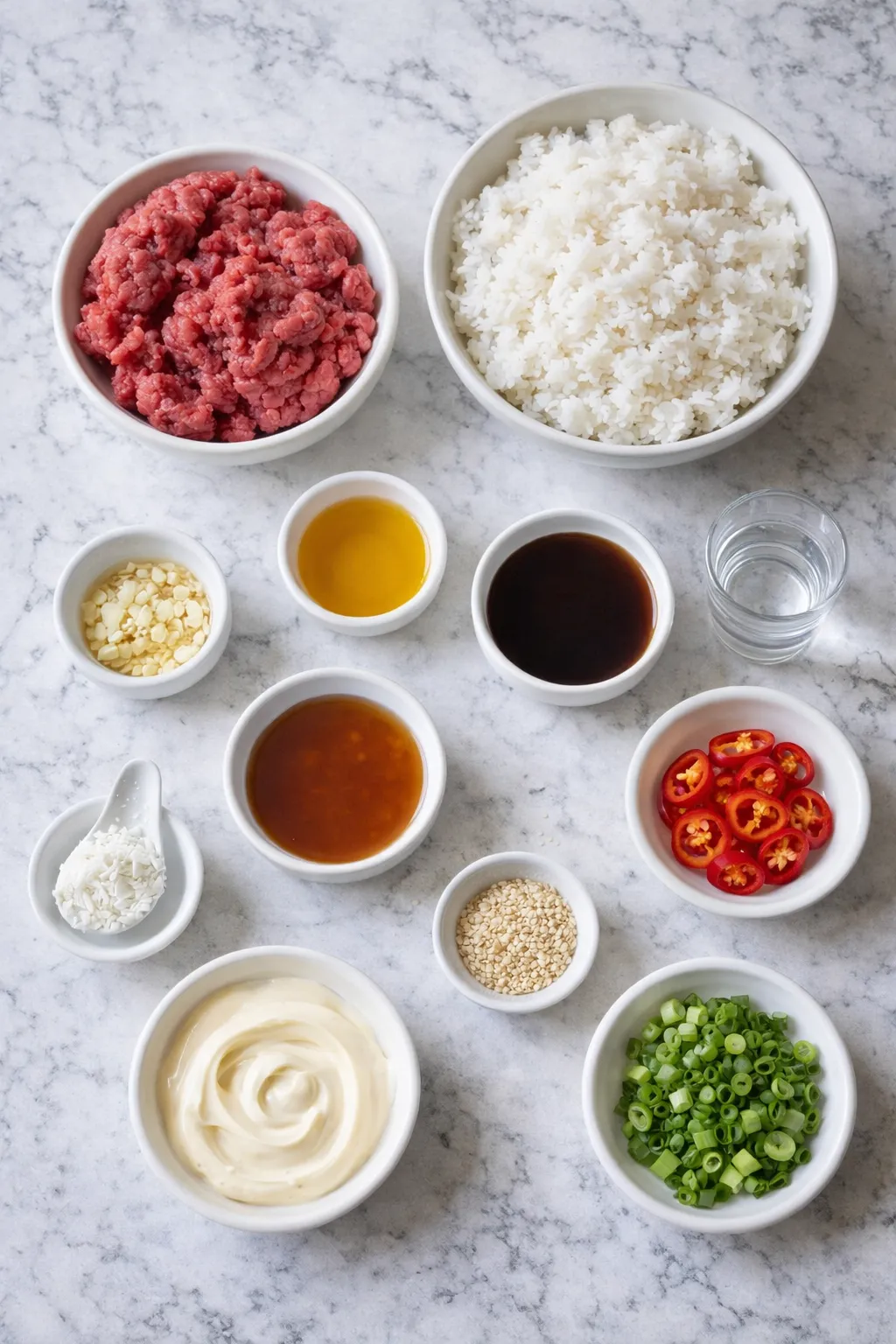 Bold, saucy, and slightly sweet with a fiery finish, the Ground Beef Hot Honey Bowl is the dinner hero you didn’t know you needed. Think sizzling ground beef glazed in a sticky hot honey sauce, spooned over fluffy white rice with a luscious swipe of creamy mayo underneath. The final touch? A crunchy kick of scallions, sesame seeds, and sliced chili for that knockout bite.