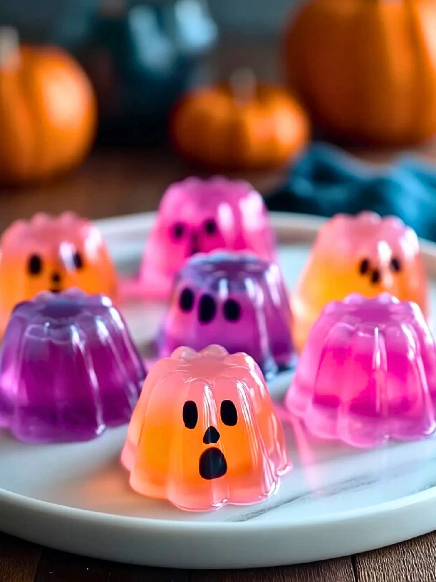 5. Remove from molds and use black gel icing or edible markers to add ghost faces. Keep chilled until serving.
