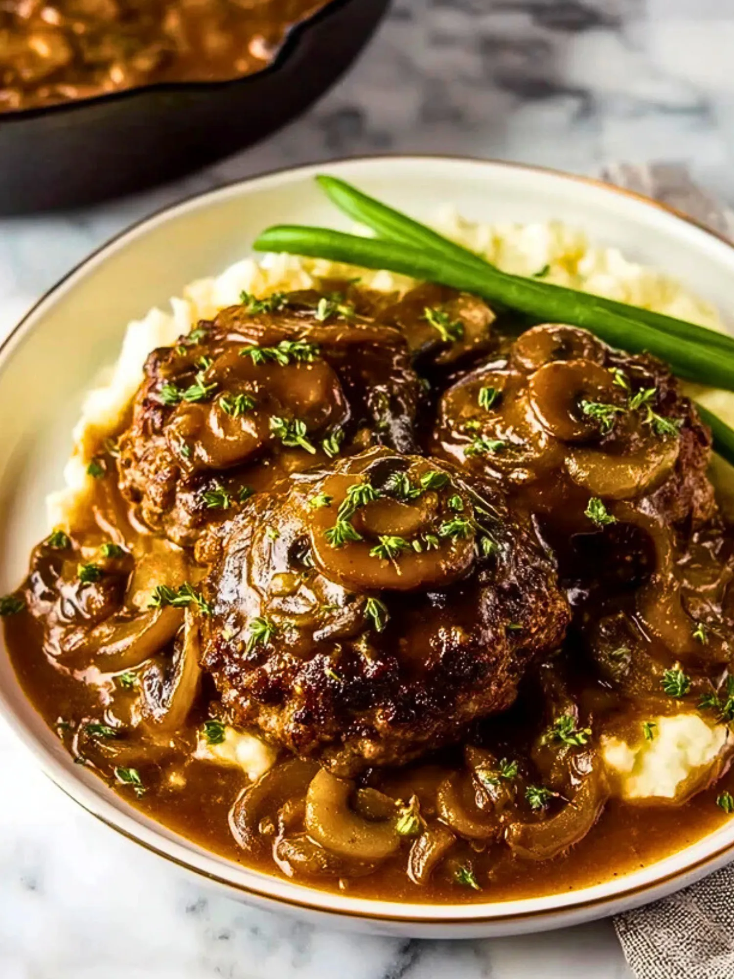 If you’re craving a quick dinner idea that feels like home, this Homemade Salisbury Steak is your answer. Juicy beef patties cooked in a rich mushroom-onion gravy — it’s a classic that delivers every time. Perfect for easy weeknight dinners, comfort food lovers, or anyone looking for budget-friendly meal ideas. Serve it with mashed potatoes or veggies and enjoy a hearty, satisfying dish.
