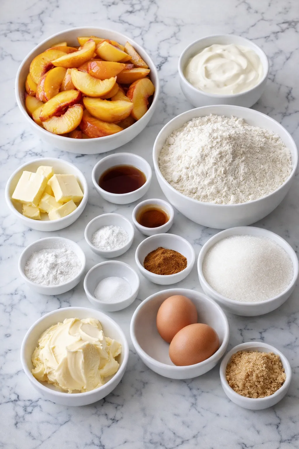 - Fresh peaches – the star ingredient, adding juicy sweetness and that unmistakable summer flavor.