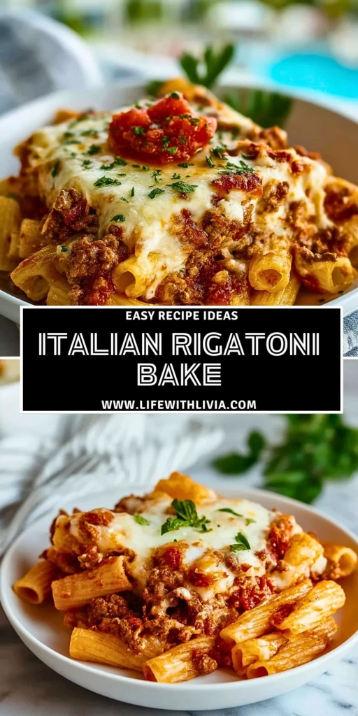 Whether you’re planning a cozy weeknight dinner or hosting a casual dinner party, this dish is a guaranteed crowd-pleaser. It’s satisfying, comforting, and incredibly easy to prepare. The beauty of the Italian Rigatoni Bake is that it combines simplicity with robust flavor. It’s the kind of recipe you’ll keep coming back to — and your family will request again and again.