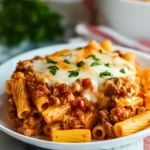 This Italian Rigatoni Bake is the ultimate comfort food — cheesy, saucy, and satisfying. Featuring tender rigatoni pasta baked with a savory meat sauce and topped with melted mozzarella and parmesan, it’s the perfect choice for a quick dinner, an easy recipe to impress guests, or make-ahead food ideas for busy weeknights. With rich Italian flavor and hearty ingredients, this dish fits right in with your favorite dinner ideas and healthy-ish indulgences.