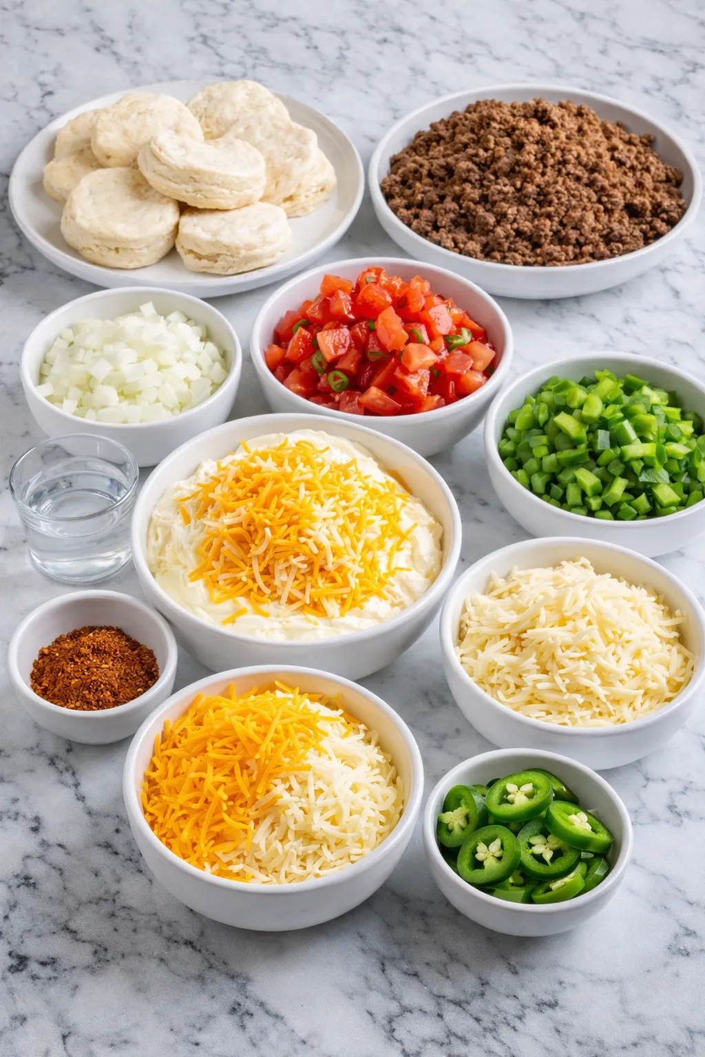 - Refrigerated biscuit dough: creates the soft, sturdy base that holds the casserole together.
