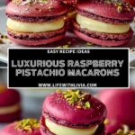 Treat yourself to these Luxurious Raspberry Pistachio Macarons — a crisp, chewy French dessert with vibrant raspberry shells, a silky white chocolate ganache filling, and a sprinkle of crunchy pistachios. Whether you’re looking for an elegant treat, a beautiful edible gift, or a delicious addition to your dessert table, these delicate macarons are the perfect choice. This easy recipe is ideal for anyone searching for fancy yet *doable* food ideas, breakfast ideas, or quick-to-assemble desserts that feel like a professional patisserie touch.