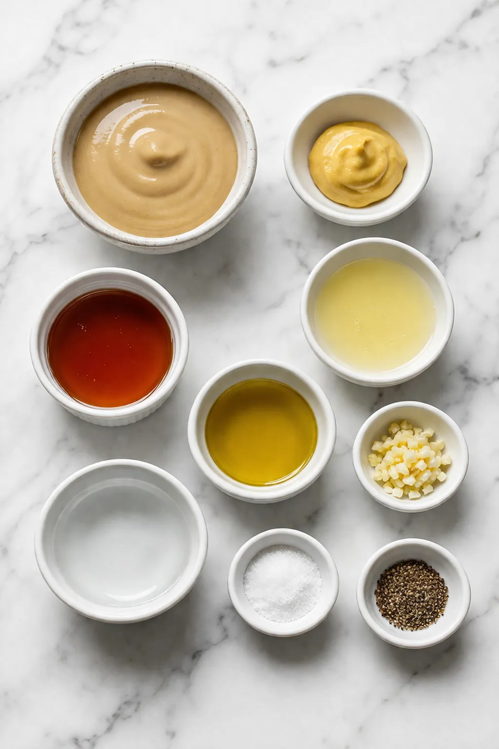 • Tahini – the creamy sesame paste that gives the dressing body, richness, and a slightly earthy, nutty flavor.