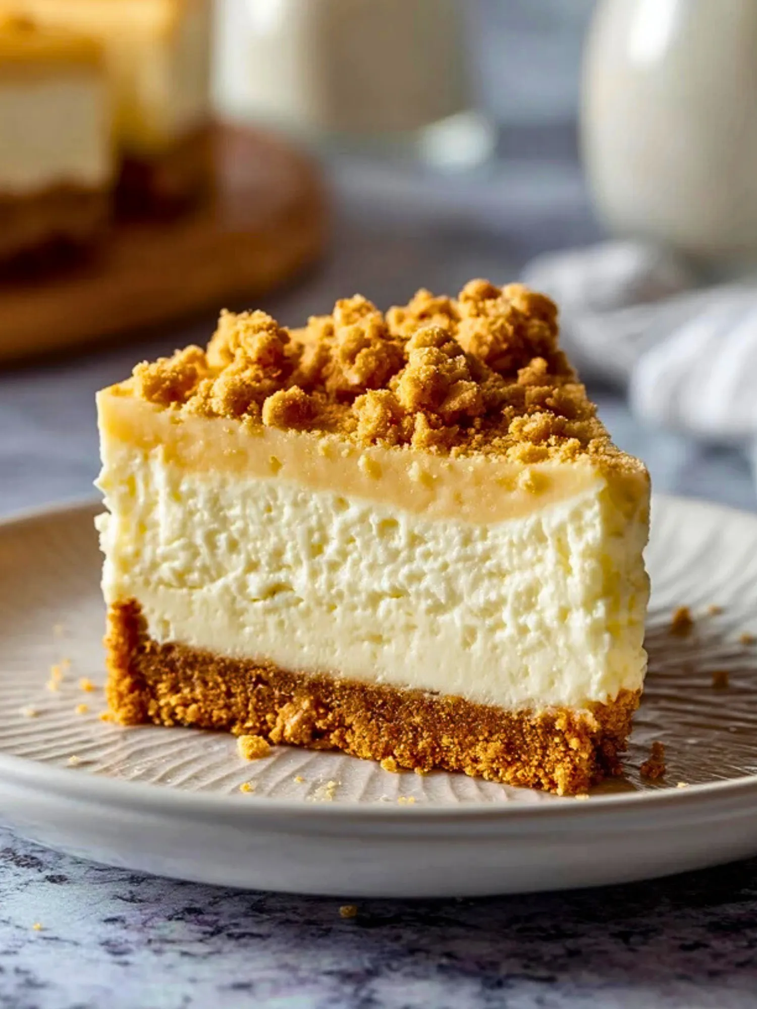 Traditionally, this cheesecake uses a simple graham cracker crust that’s buttery and slightly sweet—the perfect base to balance the airy cheesecake filling. You can stick with classic graham crackers, or try variations like honey grahams or even digestive biscuits for a slightly different flavor.