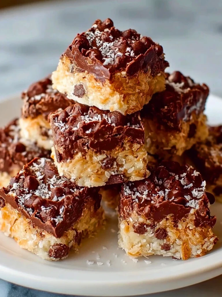 The chocolate topping is totally customizable. Semi-sweet chocolate chips are a classic choice, offering the perfect balance of sweet and bitter. If you like a creamier taste, milk chocolate chips will work great too. For a more intense flavor, try dark chocolate or even a drizzle of ganache. Whatever you pick, it’ll pair perfectly with the toasted coconut base.